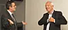Administrerende direktør Nils Kvernmo (t.v.) takker Trond Mohn for den generøse gaven 21. mars i år. Da ble en PET MR forært St. Olavs Hospital. Foto: St. Olavs Hospital